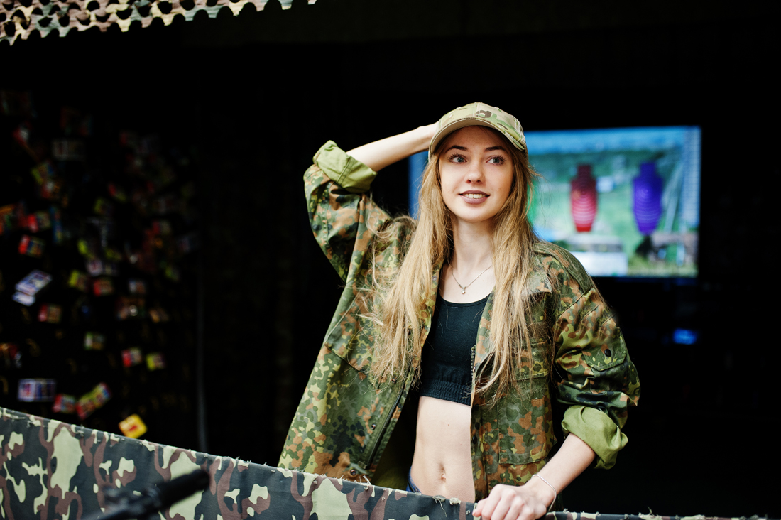 Как устроить праздник в стиле милитари? Подготовить камуфляжные костюмы, ввести строгую дисциплину и систему воинских чинов для всех участников торжества. Мероприятие лучше организовать на природе, включив в программу игру в пейнтбол, веселый конкурс на физическую подготовку, создать полосу препятствий, которую нужно пройти каждому участнику. Ну, а чтобы стол соответствовал тематике, нужно включить в меню тушенку с кашей и черный хлеб, используя для сервировки оловянную посуду.